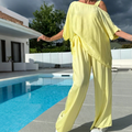 Package Includes: 1* Women's Soft Casual Top and Wide-Leg Set