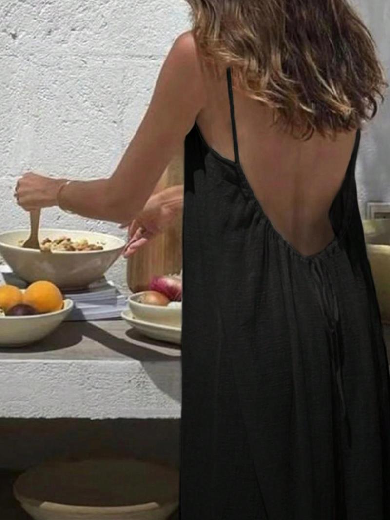 Embrace the season’s laid-back luxury with our Solid Color Backless Cami Dress—your go-to for beach days, vacations, or casual summer outings. Lightweight, breezy, and designed to turn heads, it blends comfort with a touch of allure.