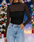 This mesh long sleeve top women is a little sexy but still very classy. The mock turtleneck and sheer mesh sleeves add a touch of temptation, and are designed with layered pleats from the chest to the waist for a more design-friendly fit
