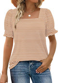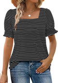 Women's Square Neck Smocked Sleeve T-Shirt Casual Top