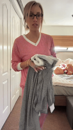Get into the festive spirit with this cozy Christmas striped pajama set! Featuring a flattering V-neck, soft long sleeves, and a comfy elastic waistband, it’s the ultimate blend of holiday cheer and relaxation. Perfect for sipping cocoa by the tree or lounging in style all winter long.