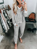 Women's Striped Christmas Print V Neck Tee & Drawstring Waist Pants Sets