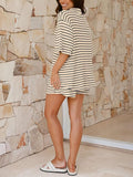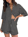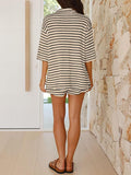 Relax in style with our Striped Knit Lounge Set. The perfect combination of cozy and chic, this set features a flattering V-neckline, oversized button-down shirt, and comfy drawstring shorts. Whether you're lounging at home or heading out for a casual day, this set’s soft, breathable knit fabric and trendy stripes will keep you looking effortlessly stylish.