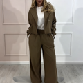 Package Includes: 1*Women's Stylish Lapel Jacket & Wide-Leg Pants 2-Piece Set