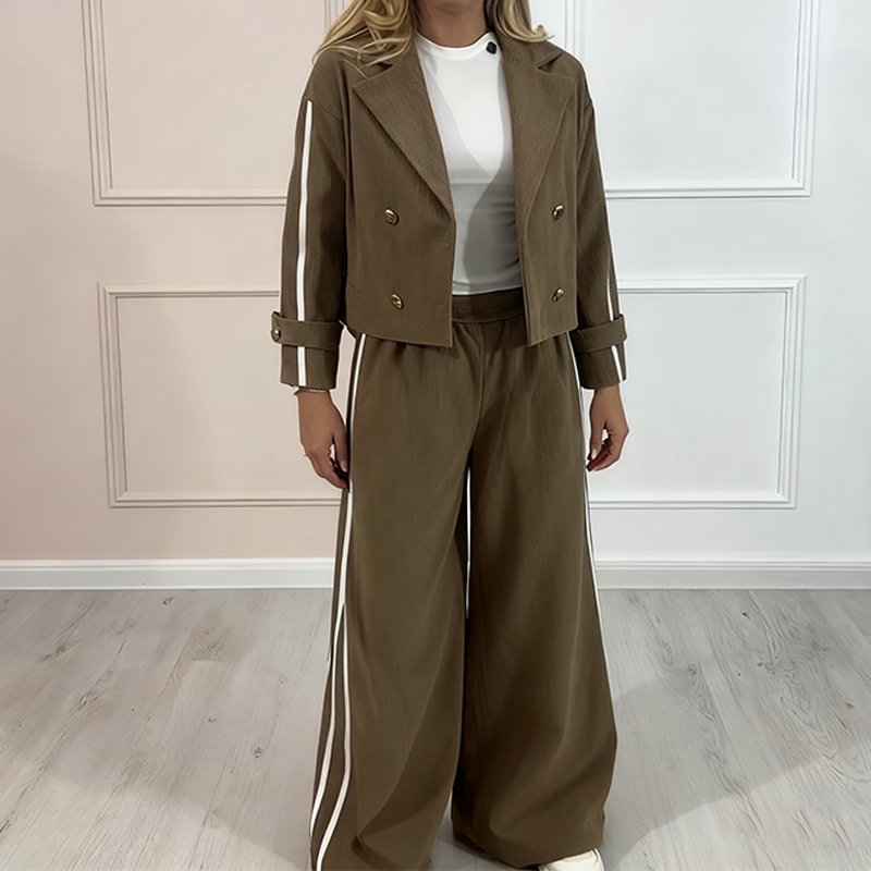 Women's Stylish Lapel Jacket & Wide-Leg Pants 2-Piece Set