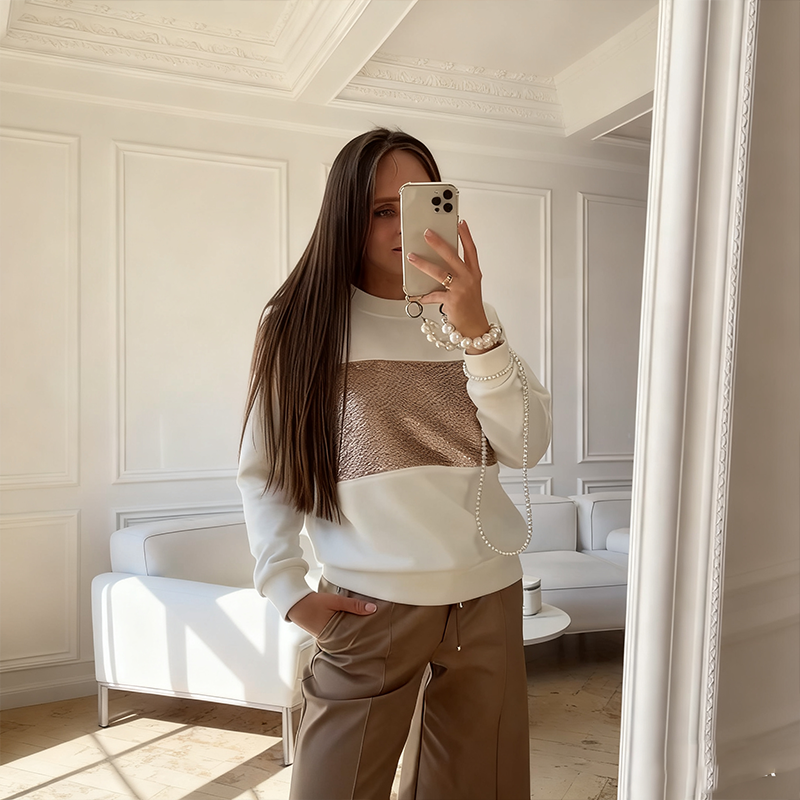 SPARKLING SEQUIN PANEL - Instantly elevate your casual look with the eye-catching sequin embellishment. This glamorous detail adds a touch of sophisticated sparkle, making this top perfect for transitioning from daytime casual to evening chic.