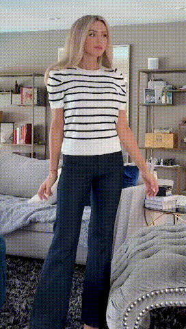 This striped tops with puff short sleeve will make you chicer and more charming, suitable to wear for spring, summer, fall and winter, you can's miss this basic tops for daily life or work or travel!