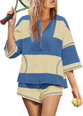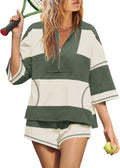 Womens Summer Oversized Quarter Zip Striped Shirt and Shorts Lounge Sets