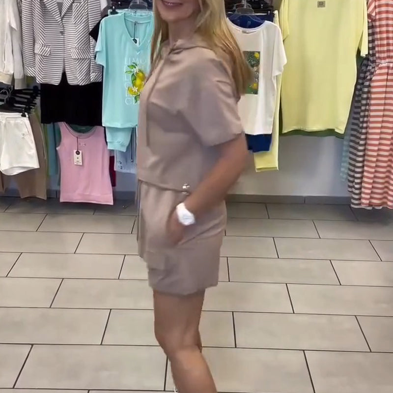 Women's Summer Short Sleeve Hoodie & Bottoms Set