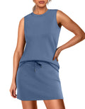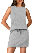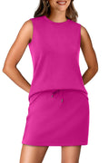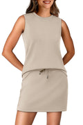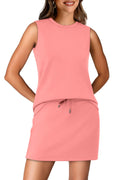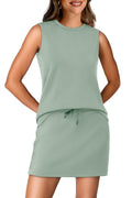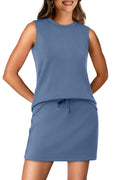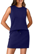Women's Summer Vacation Outfits Tennis Skirt Crew Neck Top Versatile Lounge Sets