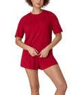 - IT'S ALL IN THE DETAILS - Boxy tee features a classic crew neckline, while the sleep shorts offer a luxe, tonal soft-stretch elastic waistband - allowing you to move with ease.