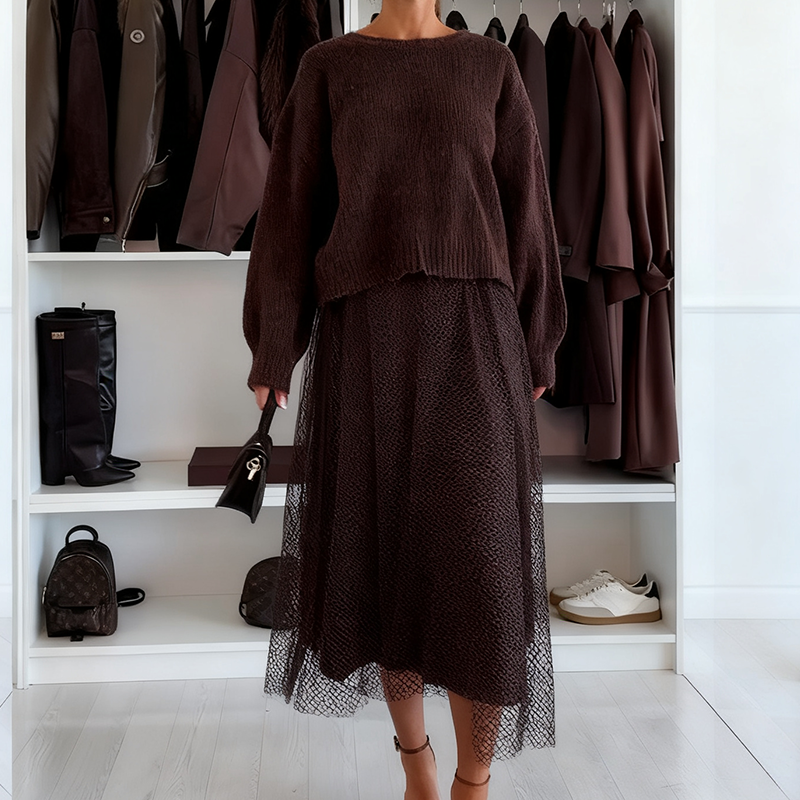 Package Include: 1* Women's Sweater & Tulle Skirt 2 -Piece Set
