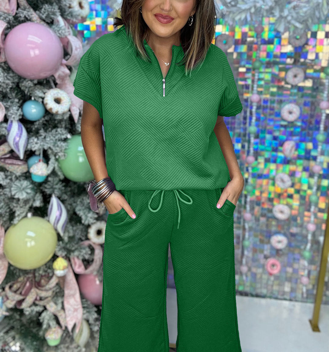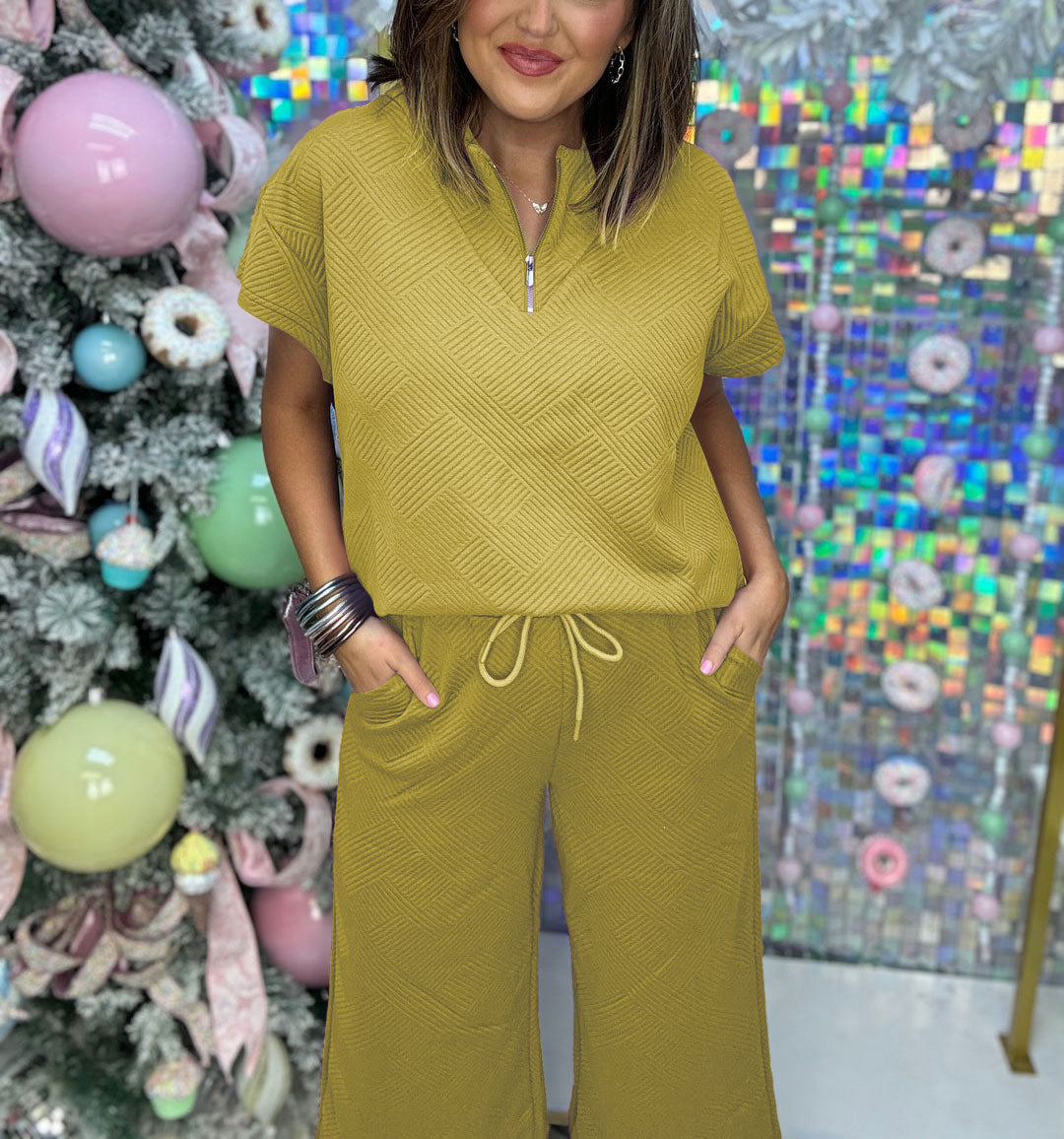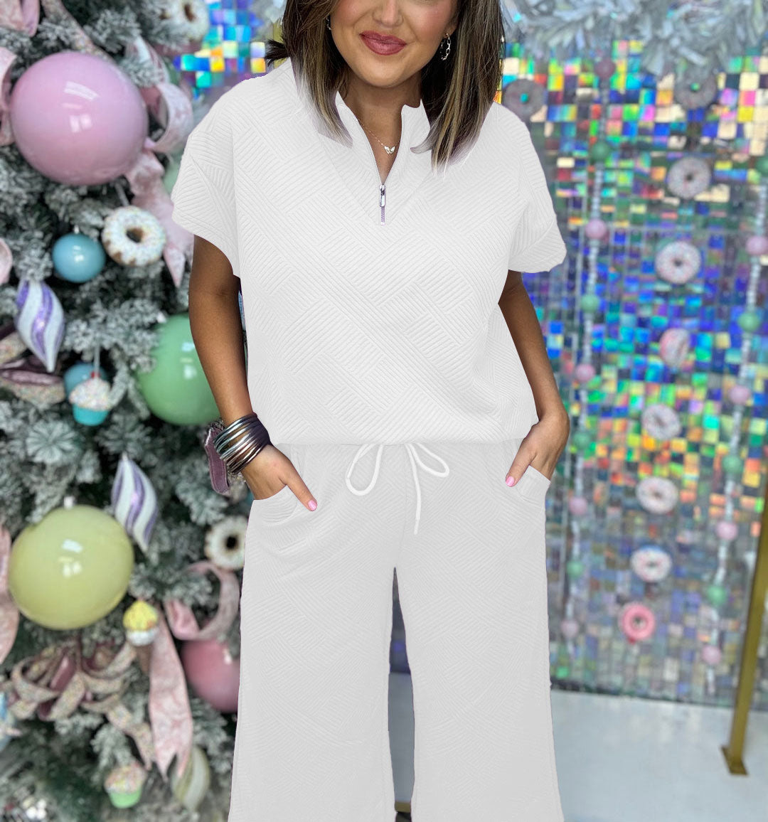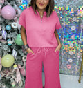 Are you looking for a comfortable and casual spring outfit that's perfect for both home and going out? This 2-piece oversized short-sleeve off-the-shoulder sweatshirt and pocket drawstring pants set! Fabric that "breathes" for comfortable drape and high elasticity! You can wear it separately.