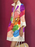 Women's Three-Quarter Sleeves Printed Lapel Shirt Dress