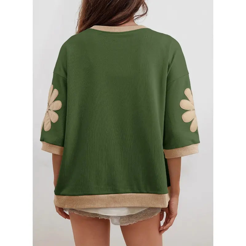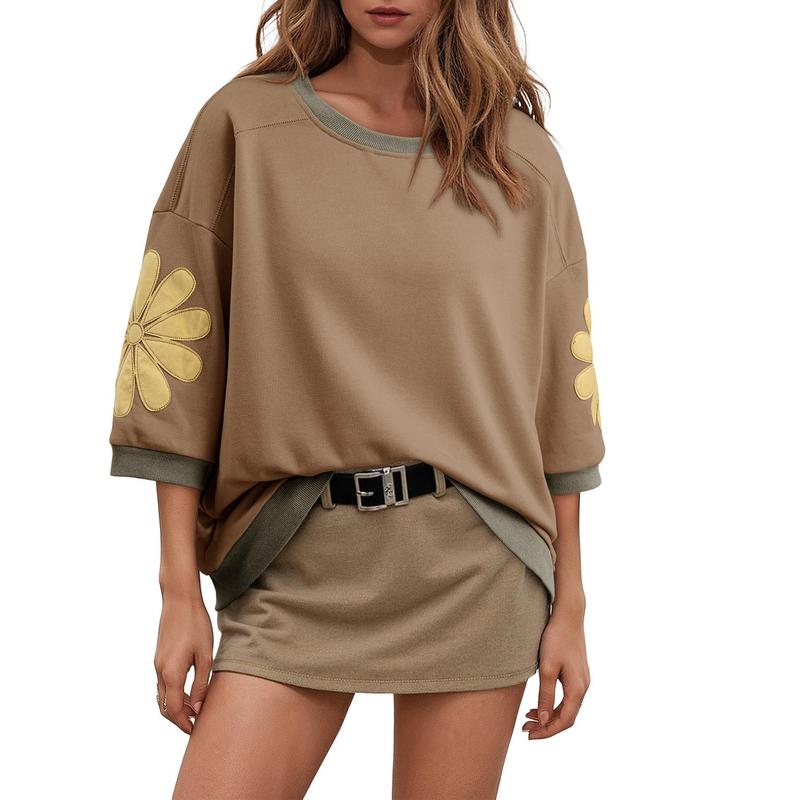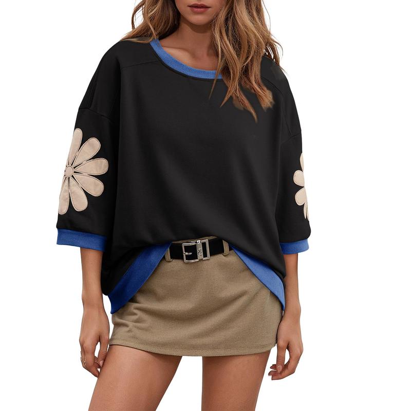 This women’s color-block patchwork blouse features floral prints and stylish three-quarter sleeves, crafted from a breathable cotton-blend fabric to keep you cool and comfortable in summer. The relaxed fit allows free movement, and its classic, versatile design makes it an essential piece for any wardrobe.