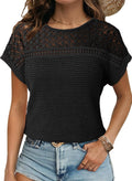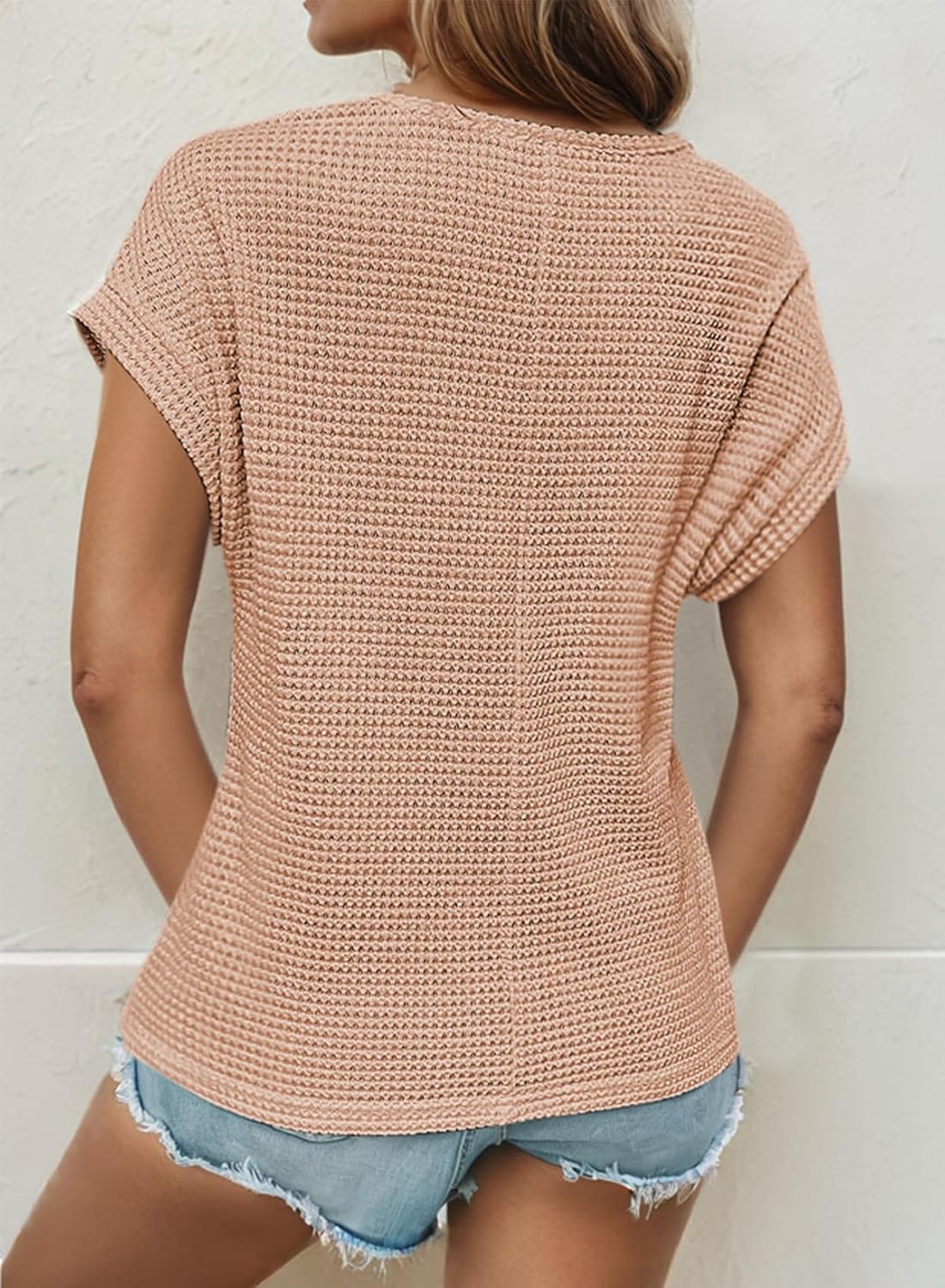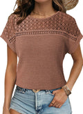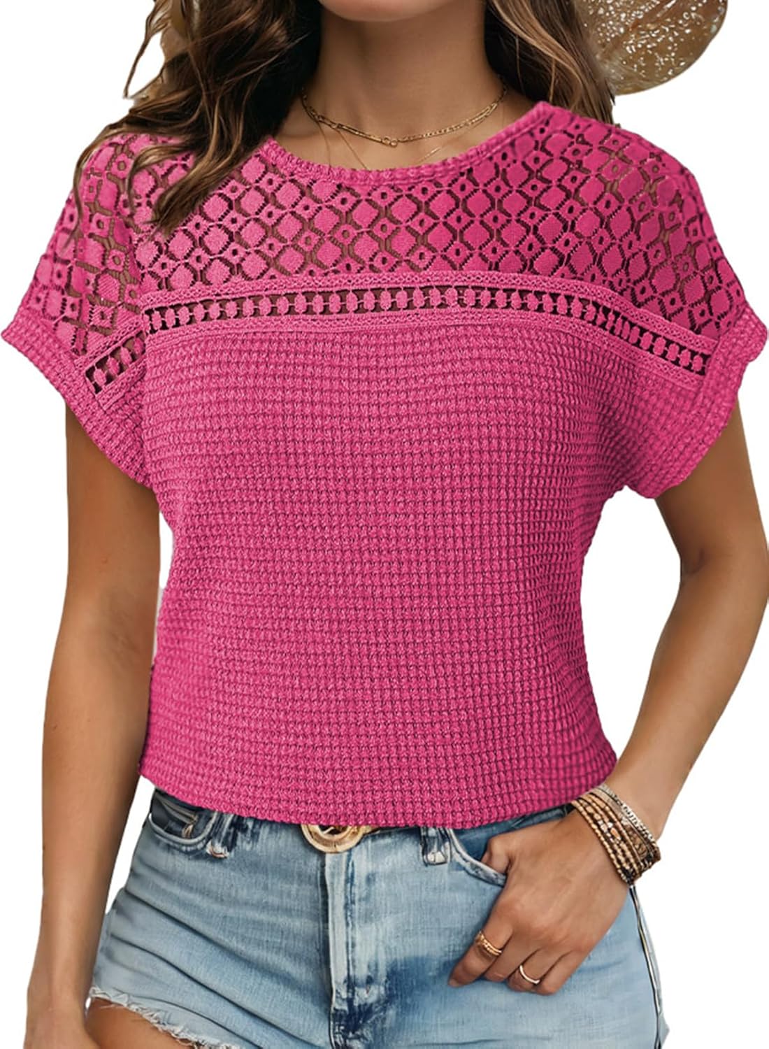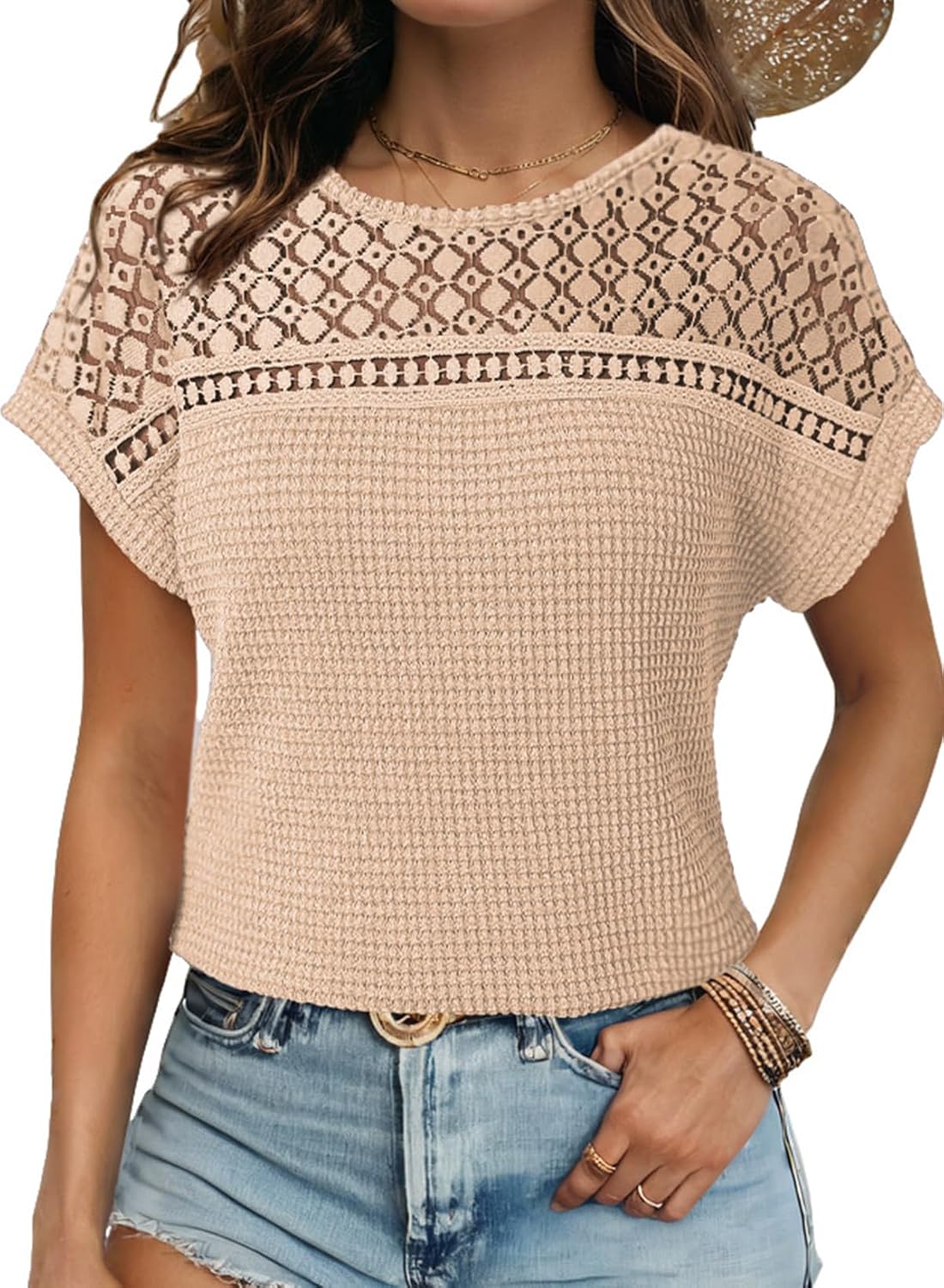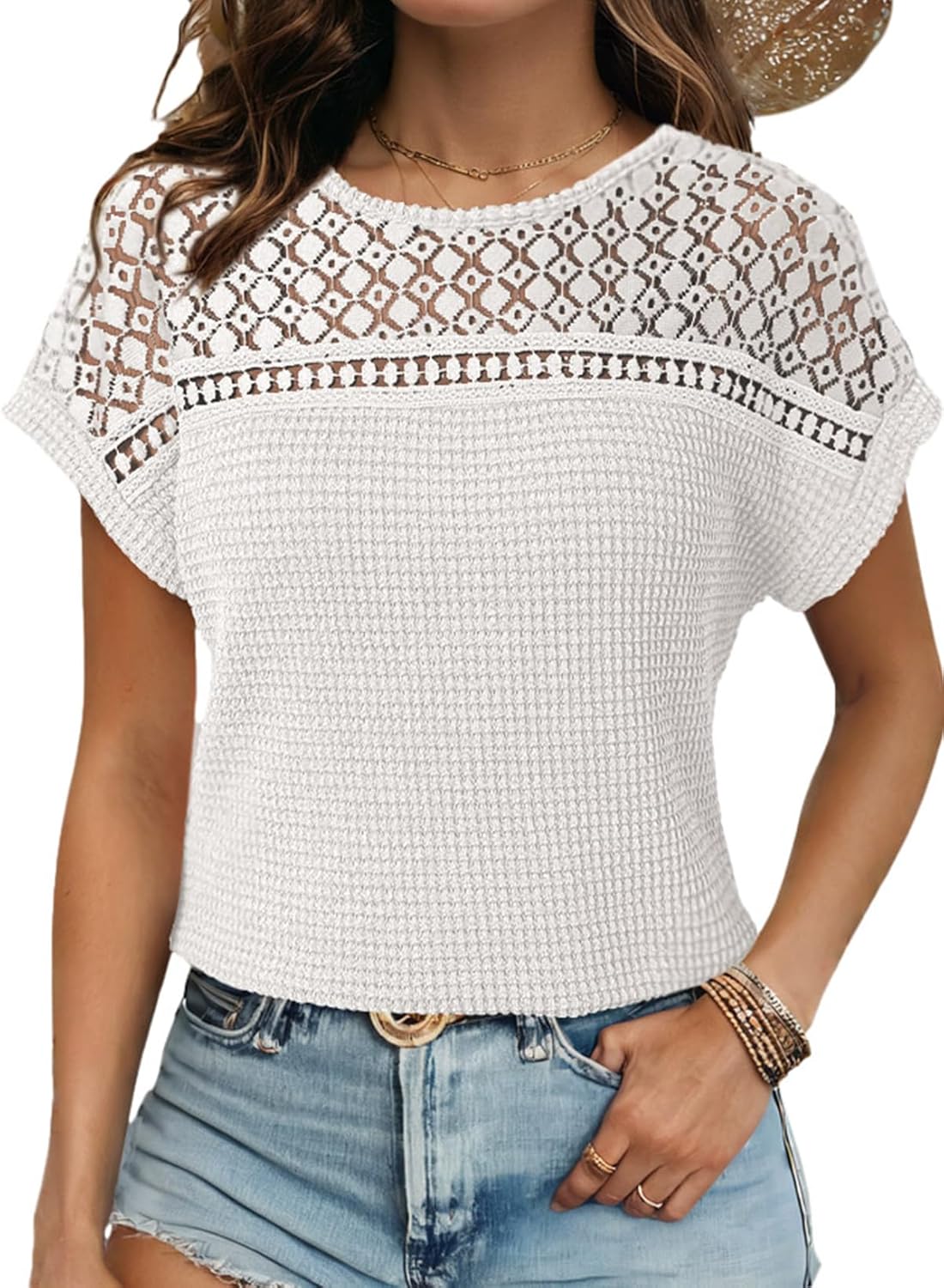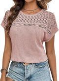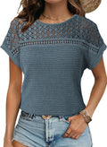 Women's Tops Casual Scoop Neck Short Sleeve Waffle Knit Hollow Out Shirts