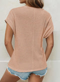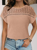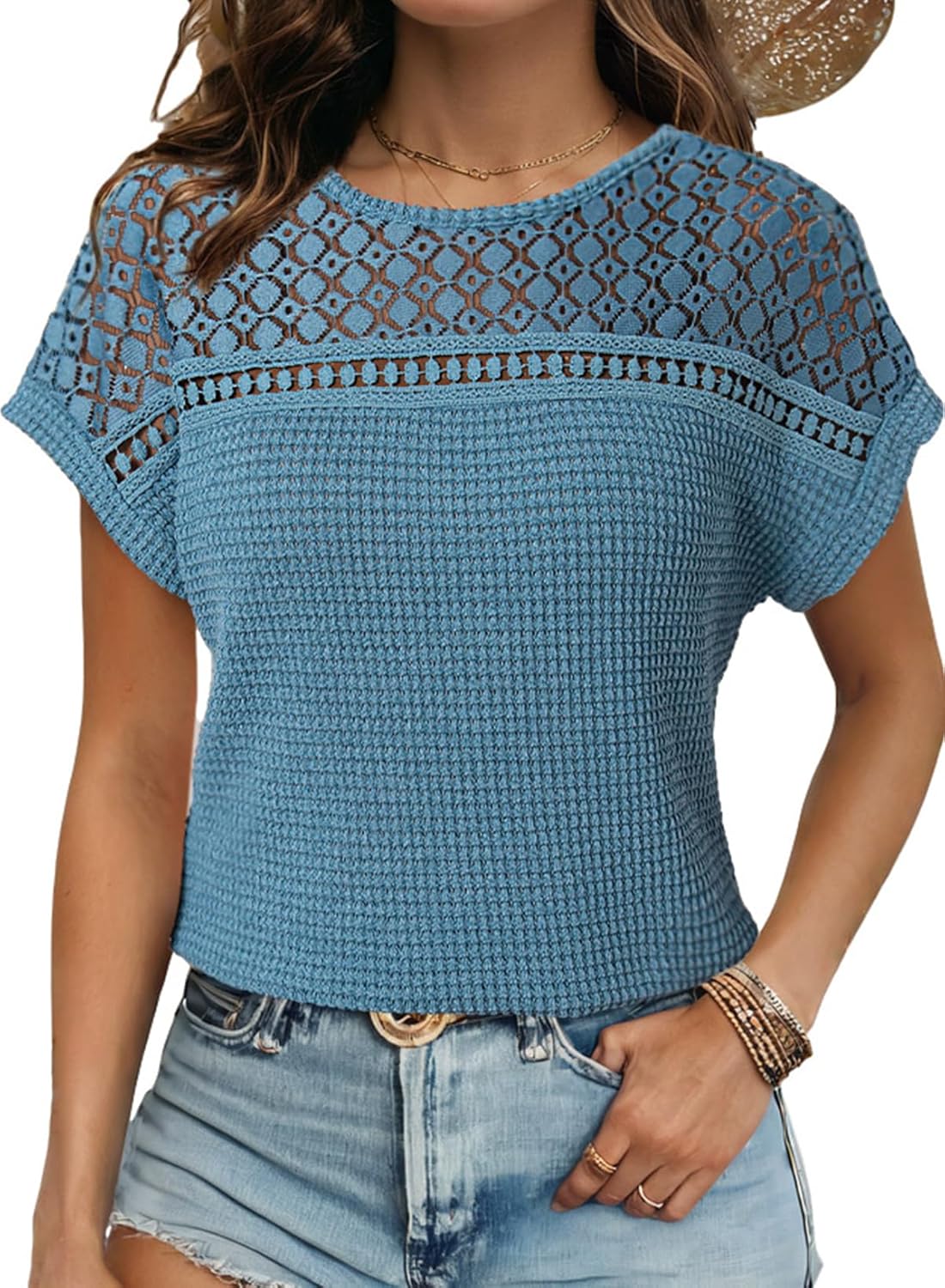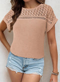 Elevate your style with our Waffle Knit Hollow Crochet Crewneck. Perfect for boho-chic lovers, this top features short sleeves for a fashionable touch.