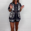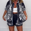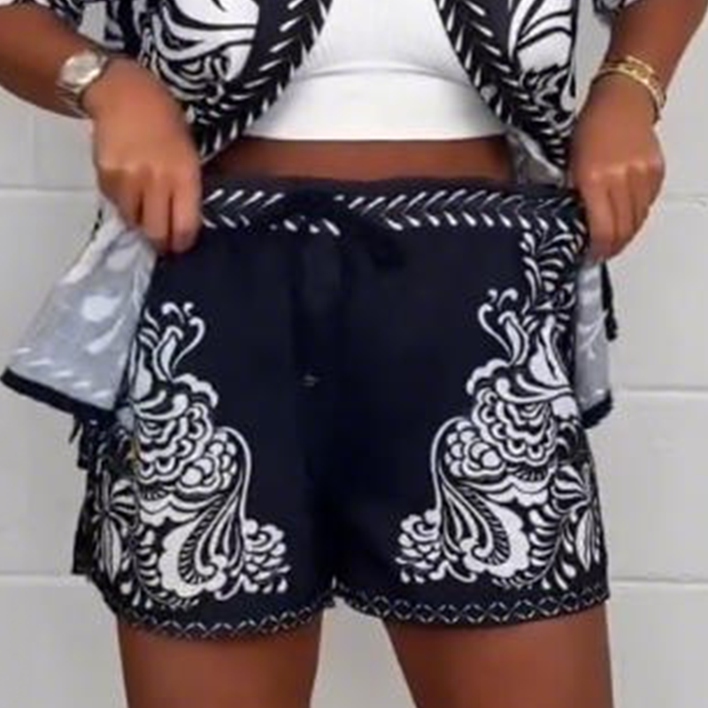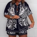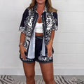 Package Included: 1 * Women's Trendy Print Loose Fit Top & Shorts Two-Piece Set