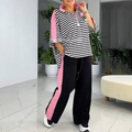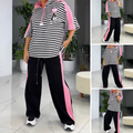Package Included: 1 * Women's Trendy Striped Top & Pants Two-Piece Set