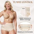 The high-waisted design gently smooths and shapes the stomach area, providing tummy control and eliminating bulges, creating a slimmer, flattering silhouette for a more confident look.