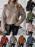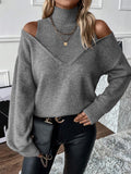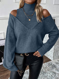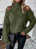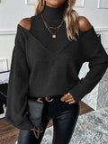 Women's Turtleneck Cold Shoulder 2 In 1 Sweater