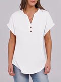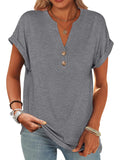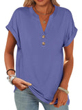 Women's V Neck Button Casual Loose Fit Short Sleeve Henley Tops