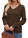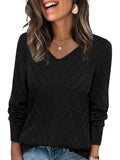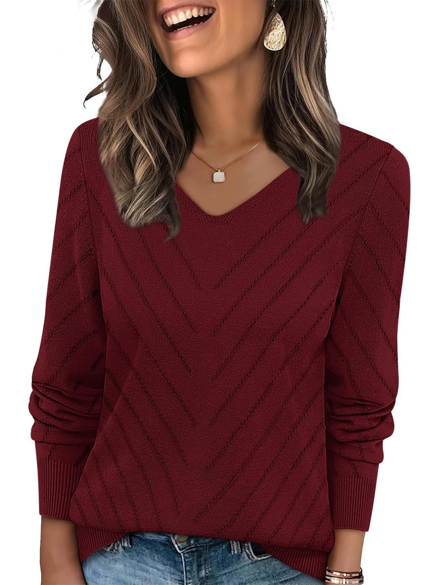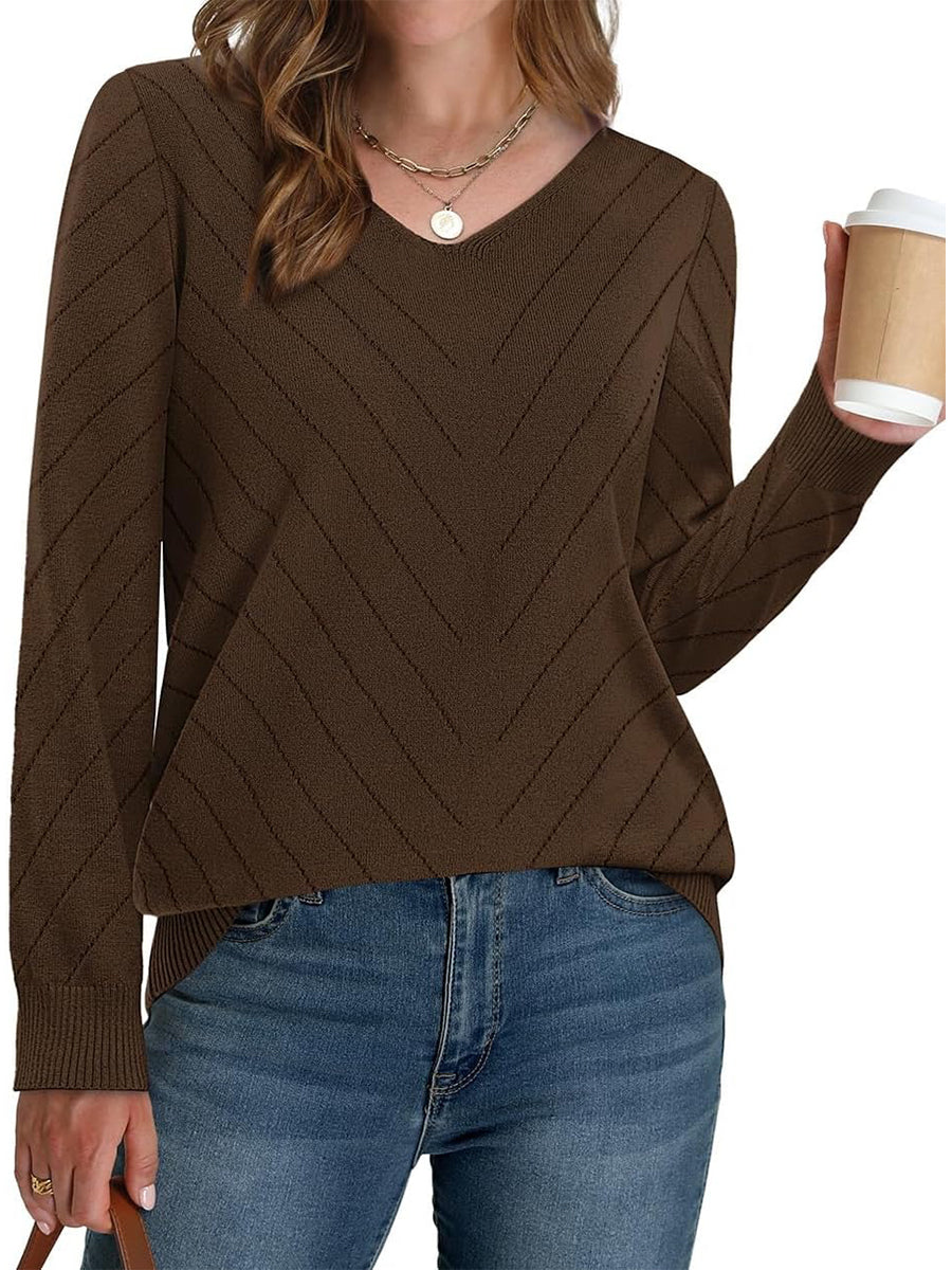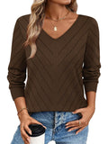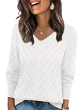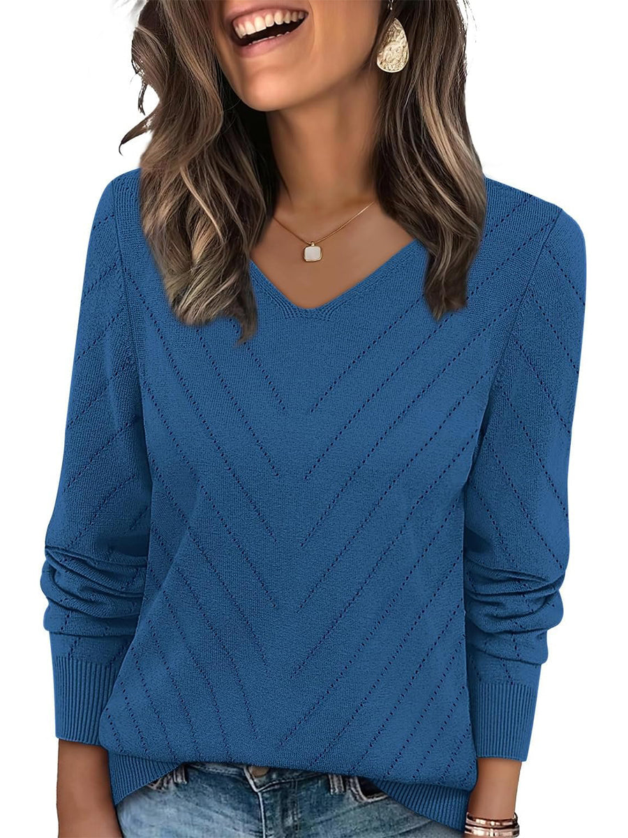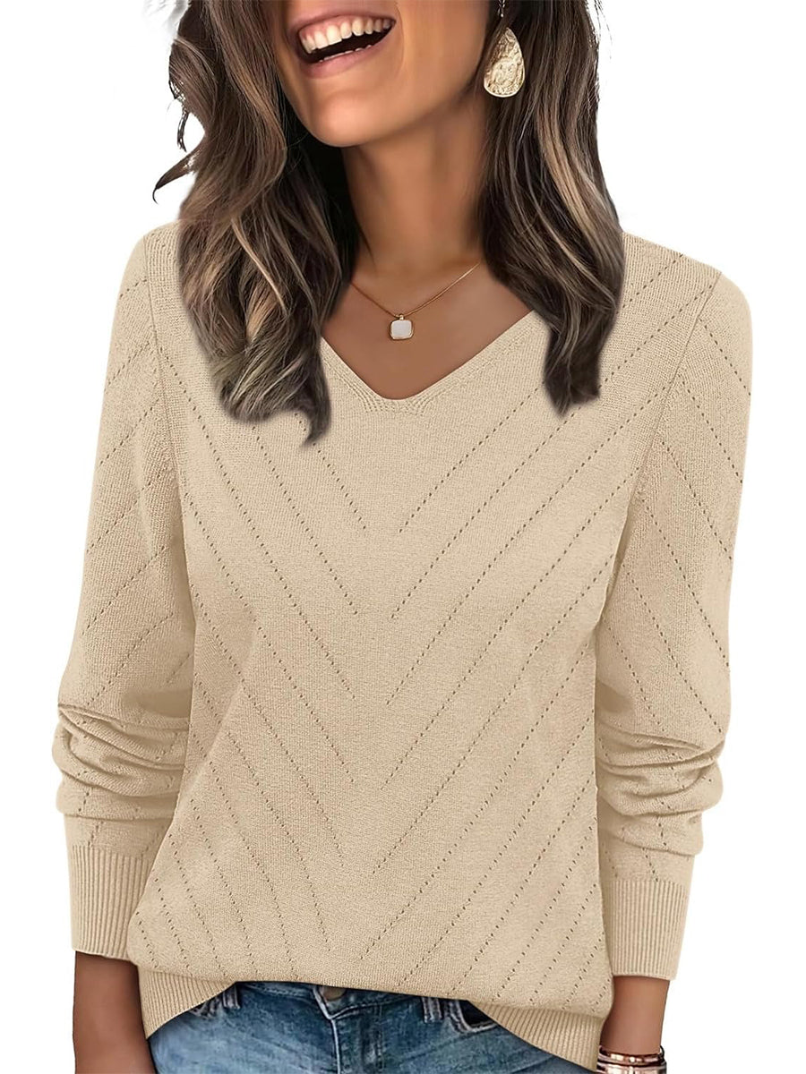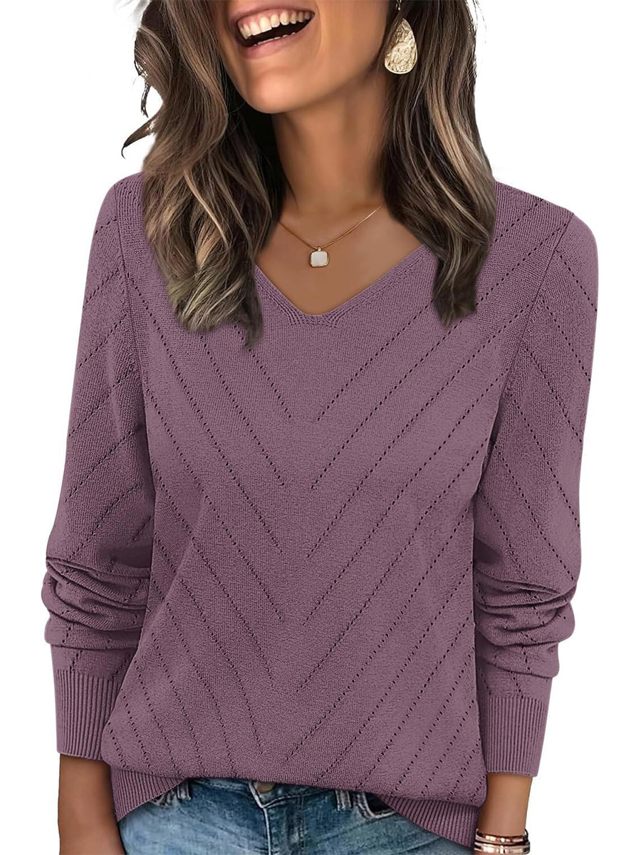 Women's V Neck Casual Knit Hollow Long Sleeve Tops Lightweight Sweaters