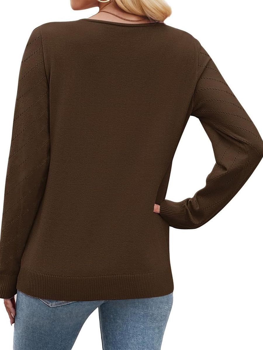 Stylish and simple—embrace casual style with this solid sweater! Super soft knit fabric, perfectly tailored for comfort. Crochet adds texture and charm, making it the perfect choice for fall and early winter.