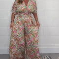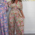 Package Includes: 1 * Women's V-Neck Printed Short-Sleeve Jumpsuits