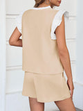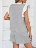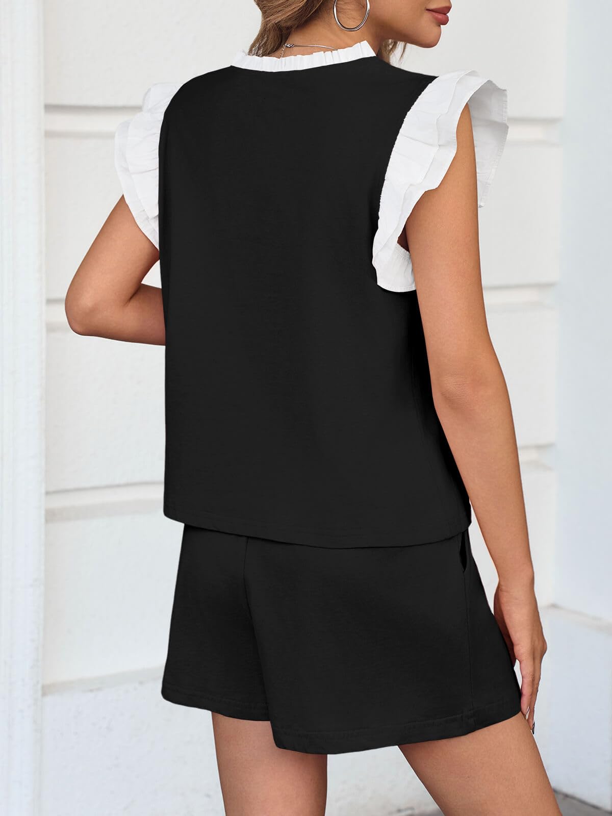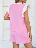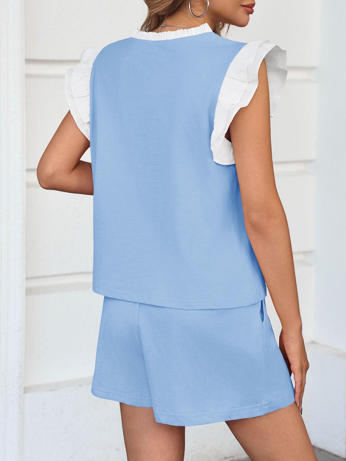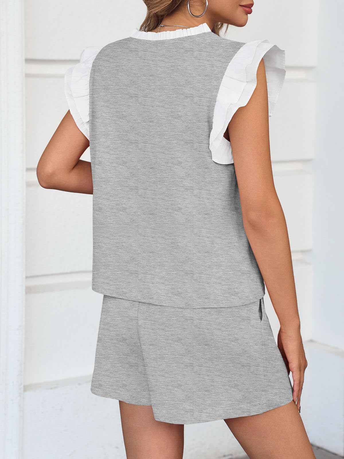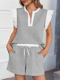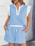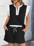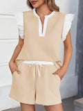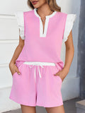 Womens V Neck Ruffle Cap Sleeve Tops and Shorts Lounge Sets