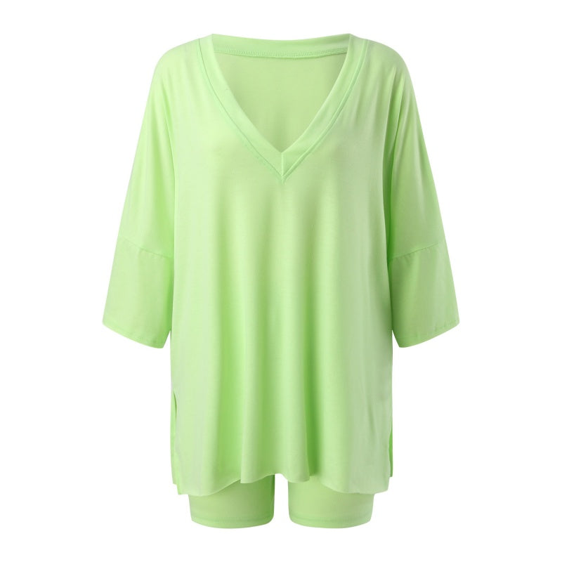 Women's V-Neck T-Shirts and Casual Shorts Two-piece Set