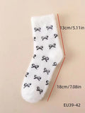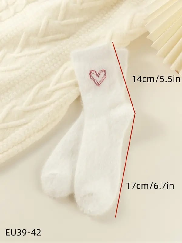 5 Pairs Fuzzy Socks with Embroidered Hearts - Plush Warm Winter Essentials