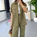 Women's Workwear Drawstring Casual Cargo 2-piece Set