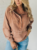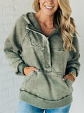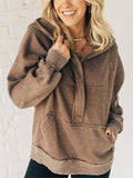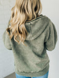 Women's Zip Henley Acid Wash Fleece Hoodie