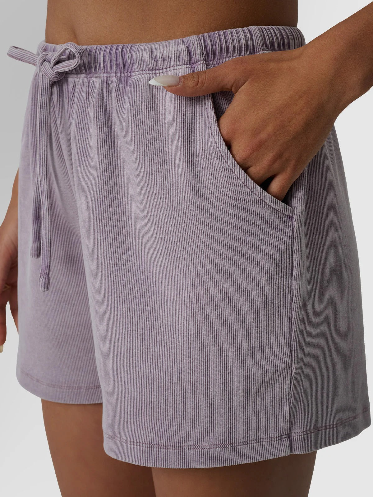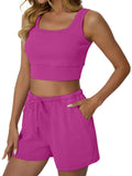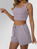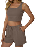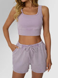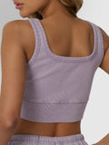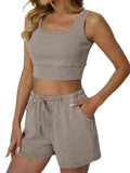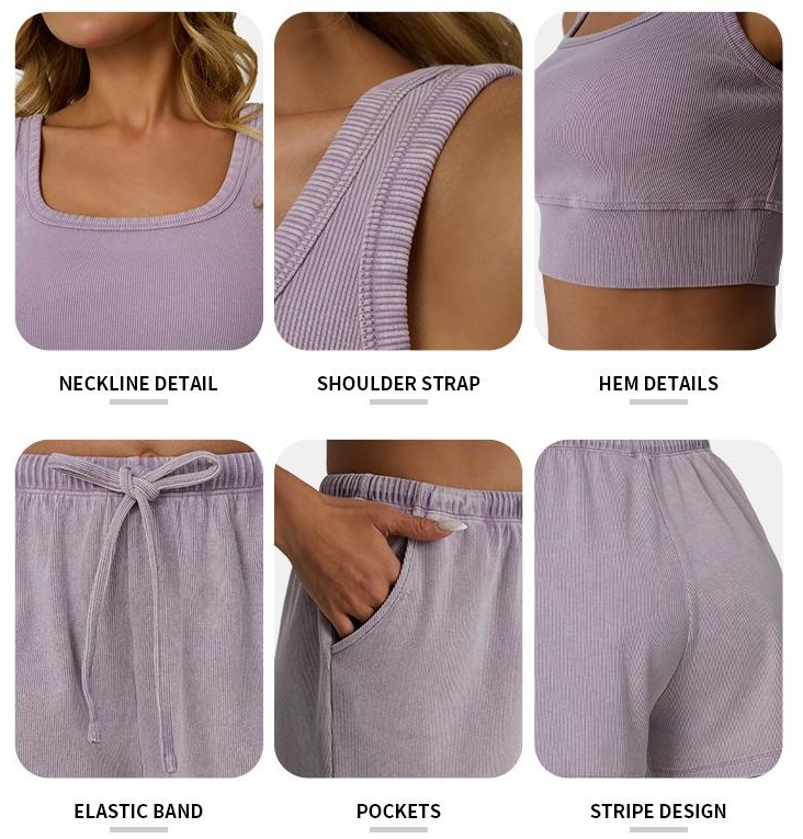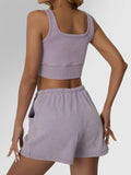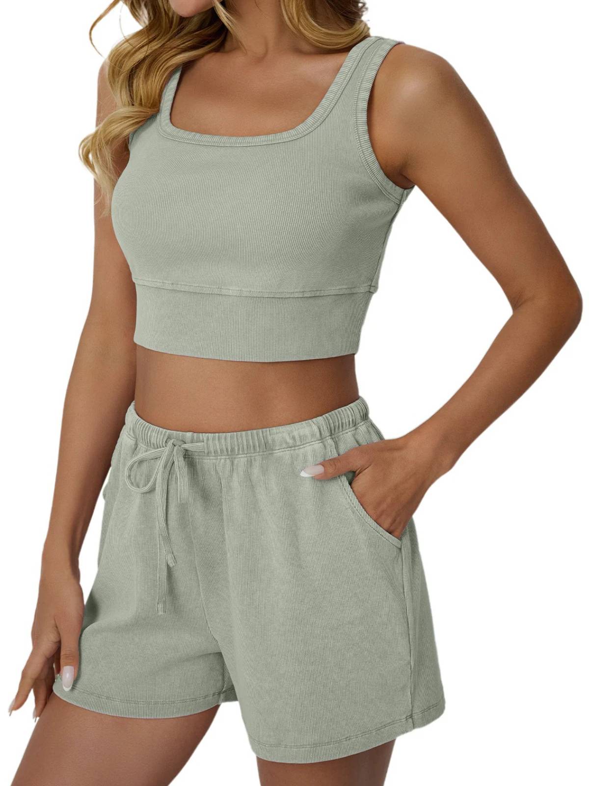 Womes Cropped Casual Acid Wash Ribbed Vest 2-Piece Set
